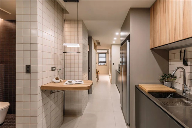 设计师于过道宽裕处增加可折迭的小平台